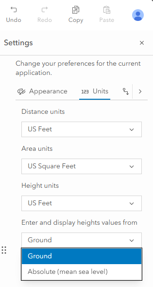 Please note the height unit used for display/used to enter values can differ from how the layer data is stored and can be changed in the Units setting within the client. By default, the way in which heights are displayed and entered by the end user will follow the applications Z Origin setting however this can also be changed within the client.